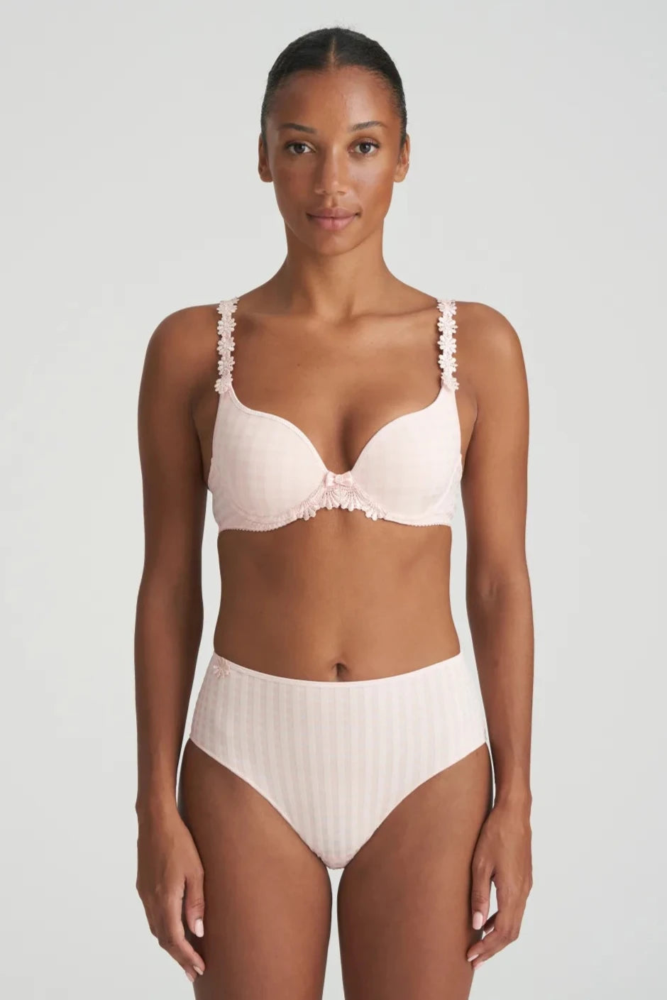 This preformed padded bra is easy to recognize by its heart-shaped cups. You can wear the straps straight, or halter-style for an instant summer feeling. The straight back with a silicone band provides extra support.